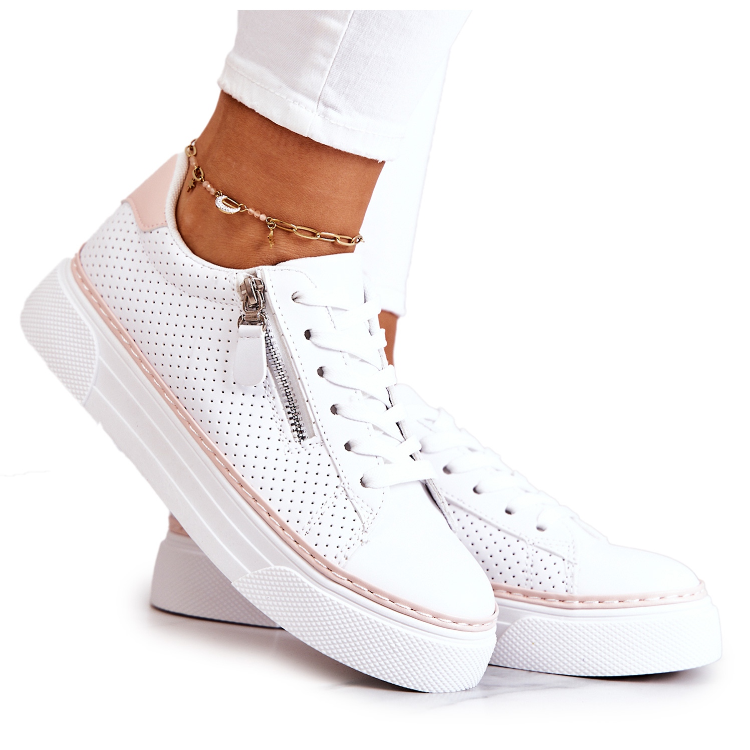 Descubre la comodidad y el estilo con las zapatillas deportivas de plataforma FB2 para mujer en color blanco y rosa. Fabricados en cuero ecológico de alta calidad, garantizan no sólo un aspecto moderno, sino también durabilidad y comodidad de uso. Estos zapatos son una combinación perfecta de funcionalidad y elegancia, que serán el complemento perfecto para muchos estilos diferentes.
