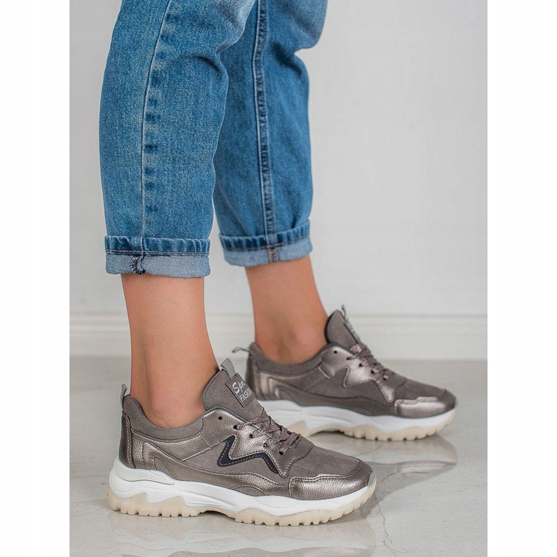 Los zapatos están fabricados con materiales de alta calidad, lo que garantiza no sólo una apariencia atractiva sino también durabilidad. Su color gris es una propuesta universal que encaja fácilmente en varios estilos. Los detalles metálicos adicionales y el patrón de purpurina les dan un carácter moderno y moderno.