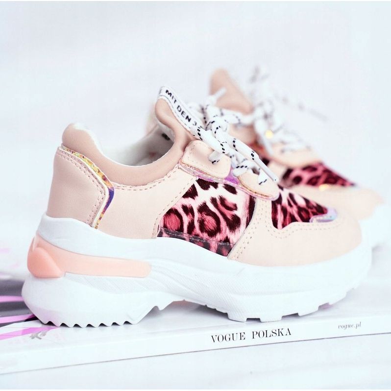 Detalles: FRROCK Zapatos deportivos para niños con estampado de leopardo Pink Penny beige rosa