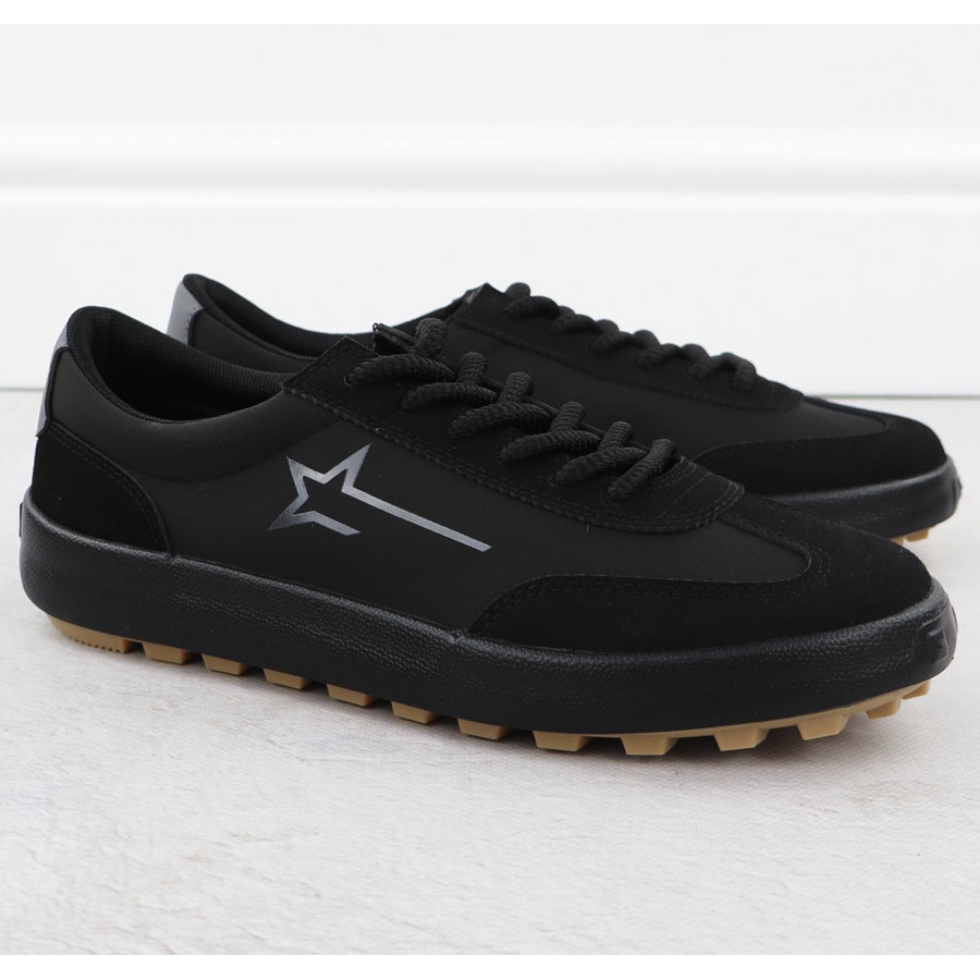 Black Big Star NN174118 Los zapatos se caracterizan por un espesor único de 2 cm, lo que admite aún más la amortiguación de los pasos. El cierre de los cordones permite un ajuste preciso, y el corte informal clásico hace que estos zapatos coincidan con muchos estilos, tanto para el gimnasio como para los resultados cotidianos.