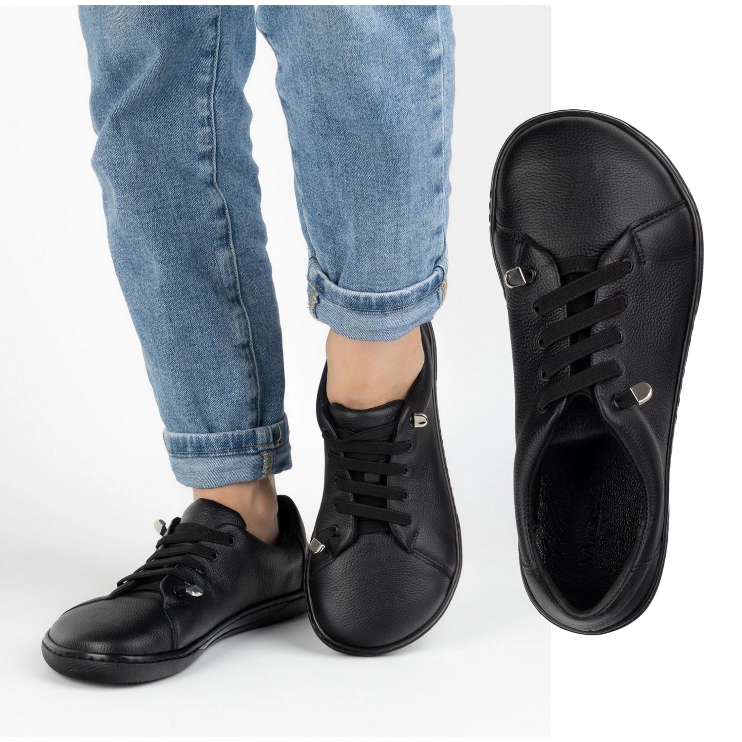 WASAK WASAK Zapatos descalzos de mujer cuero minimalista 0771W guisantes negros