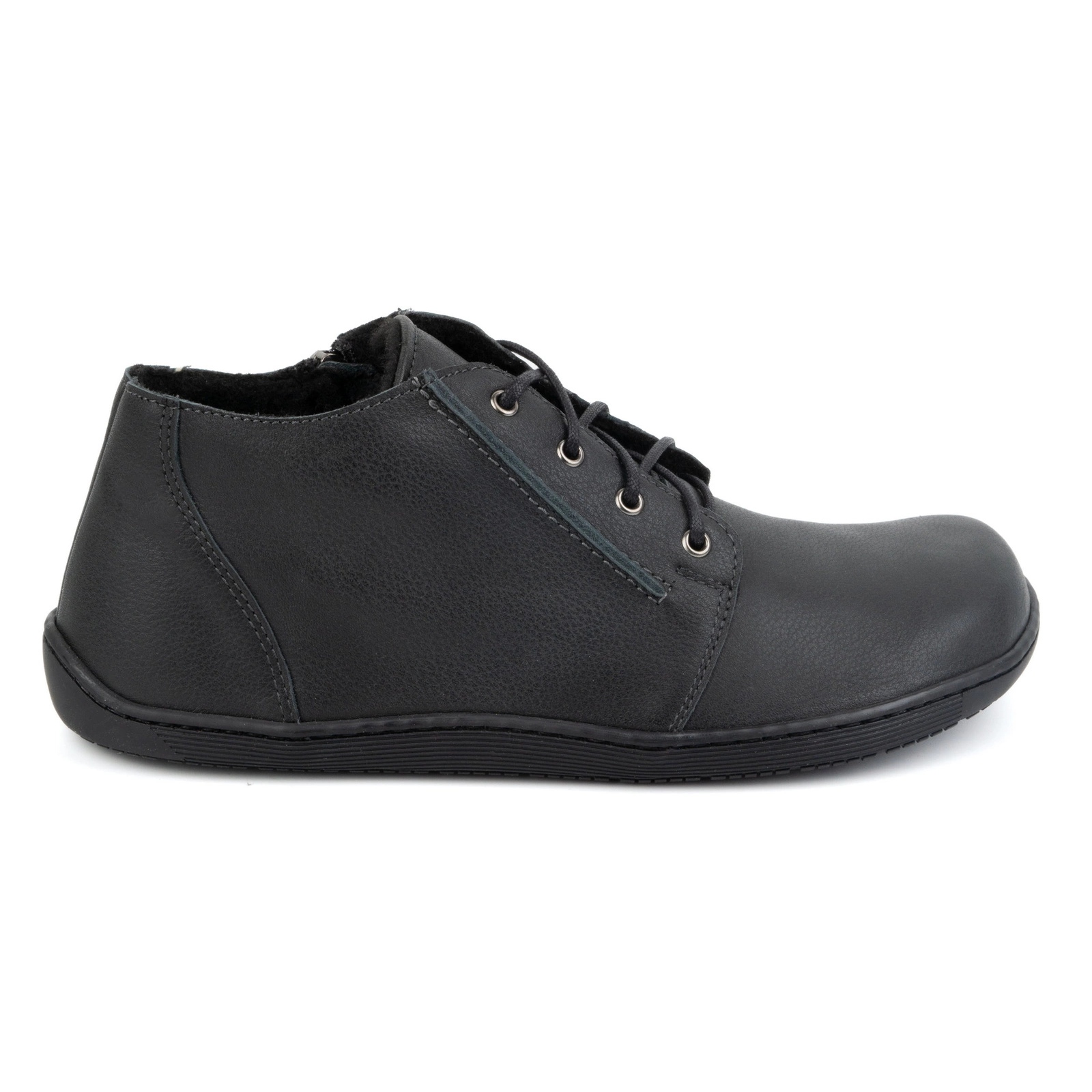 Hecho de cuero natural de alta calidad, estos zapatos proporcionan una excelente transpirabilidad y placer de usar todo el día. Su corte anatómico único apoya la forma natural del pie, que se traduce en comodidad y salud durante las actividades diarias. La suela plana le permite moverse libremente y el mejor contacto con el suelo, lo cual es importante para las personas que valoran un sentimiento natural mientras caminan.