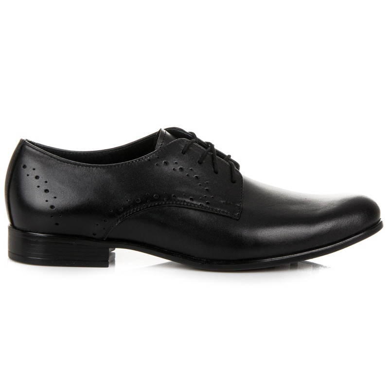Calzado elegante y atado para un caballero elegante. Zapatos clásicos perfectos para cualquier ocasión. Hecho del cuero natural de la más alta calidad, resistente al daño y caracterizado por una durabilidad superior a la media. Impresionantes adornos en la portada añaden un carácter único a los zapatos. Suela lisa y un tacón pequeño son un gran complemento para este modelo.