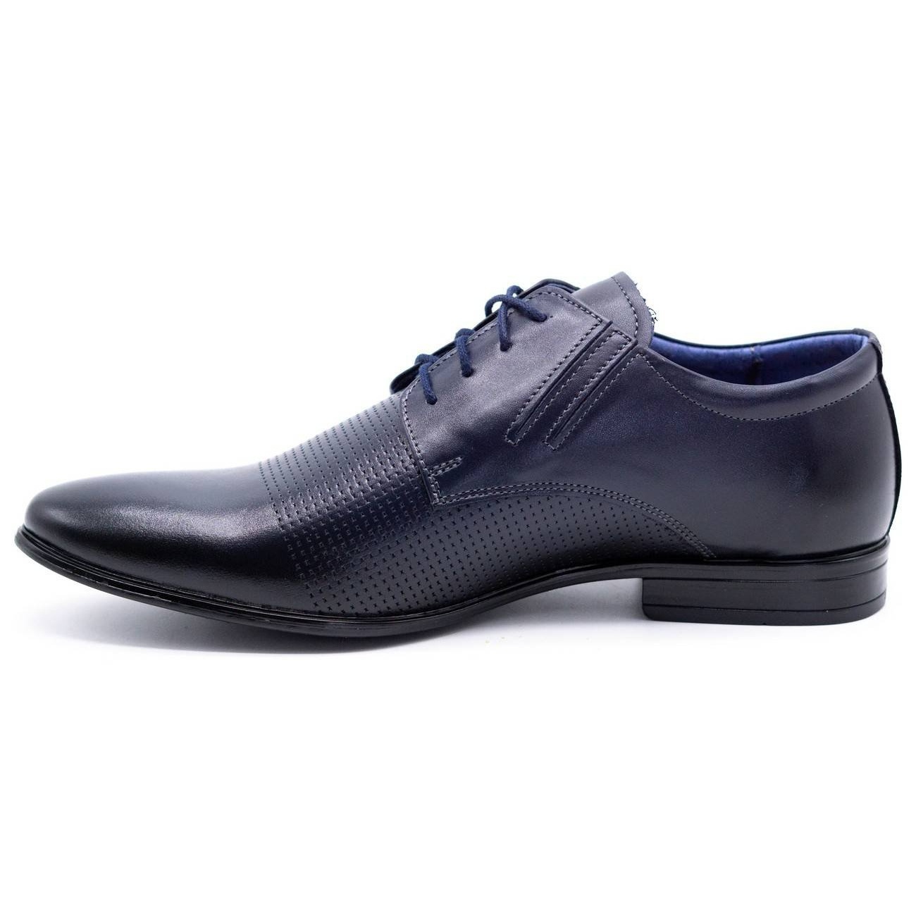 El color azul universal azul marino hace que el modelo se mezcle bien con el traje para ocasiones oficiales, pero complementará bienes menos formales, p. con jeans. El clásico, la nariz redonda y el cierre atado enfatizan la naturaleza elegante de los zapatos, y un pequeño talón con una altura de 2.5 cm mejora la figura y la comodidad de caminar.
