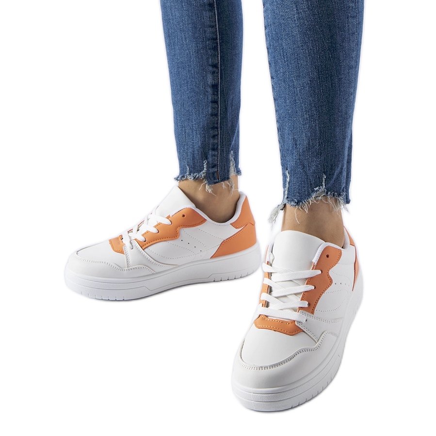 Los zapatos blancos con un acento naranja Fournie son una práctica imprescindible para el verano, combinan un aspecto de moda con comodidad y durabilidad.