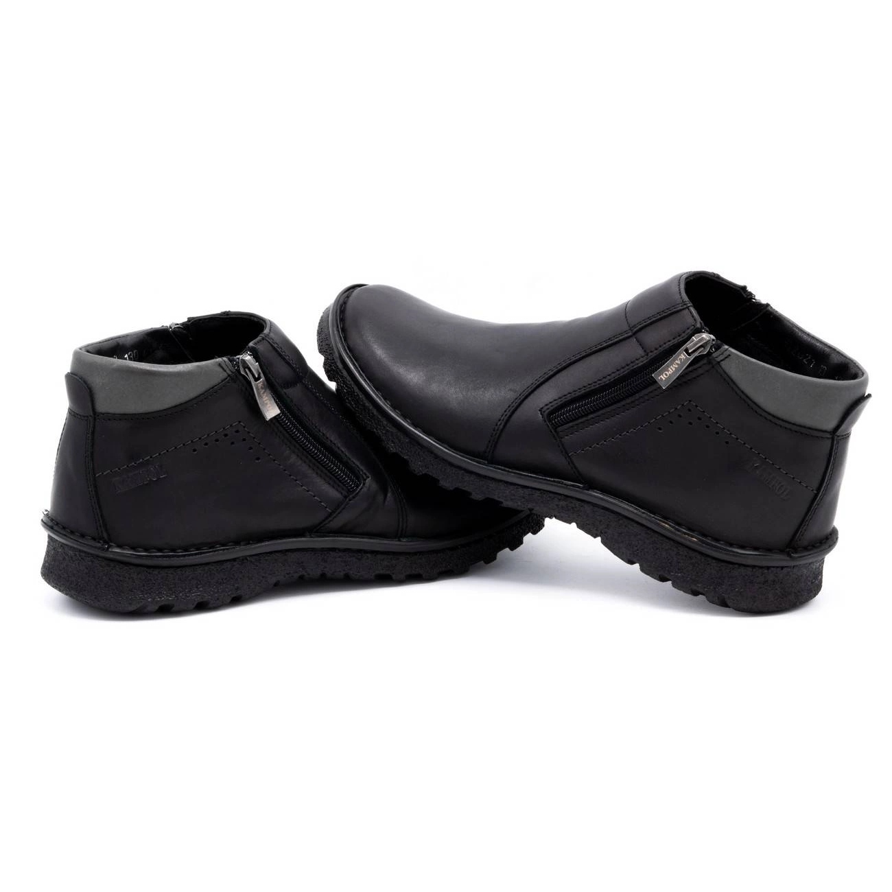 Descubre una calidad y comodidad excepcionales en los zapatos de hombre Kampol 130KA. Estos elegantes zapatos de trekking de color negro combinan un diseño moderno con funcionalidad, adaptándose perfectamente a las condiciones invernales. Confeccionados en piel natural de alta calidad, garantizan durabilidad y estilo, y el material textil del interior garantiza comodidad de uso durante todo el día.