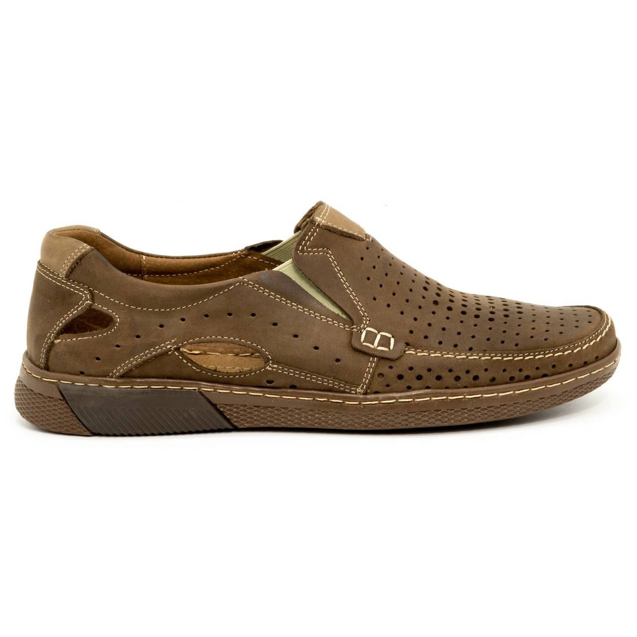Los mocasines están fabricados íntegramente en piel natural, lo que garantiza durabilidad y un look único. El interior de los zapatos está relleno con un inserto de cuero, lo que garantiza una excelente circulación del aire y comodidad de uso incluso a altas temperaturas. Gracias al cierre deslizante y a la goma elástica en los laterales, ponerse y quitarse los zapatos es muy fácil y los zapatos se ajustan perfectamente al pie.