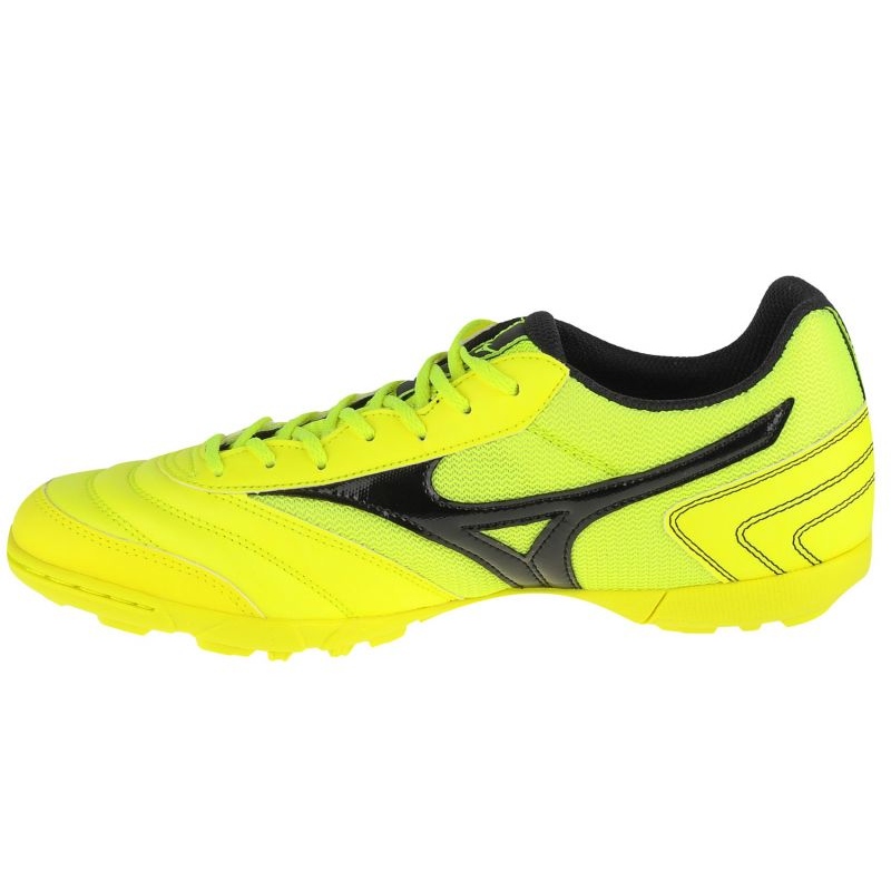 Universal Mizuno Turfs creado para jugar en un lanzamiento artificial. El modelo bajo con un color amarillo dinámico y distintivo combina comodidad, durabilidad y ajuste preciso, ideal para hombres que buscan fútboliza y calzado recreativo eficientes.