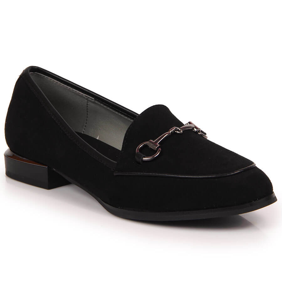 El interior del calzado está acabado con piel ecológica de alta calidad y una plantilla natural, que garantiza comodidad de uso durante todo el día. La suela de 0,5 cm de grosor absorbe eficazmente cada paso y el tacón plano de 2 cm hace que los zapatos sean perfectos para el uso diario. Gracias al cierre deslizante, ponerse y quitarse los mocasines es muy fácil.