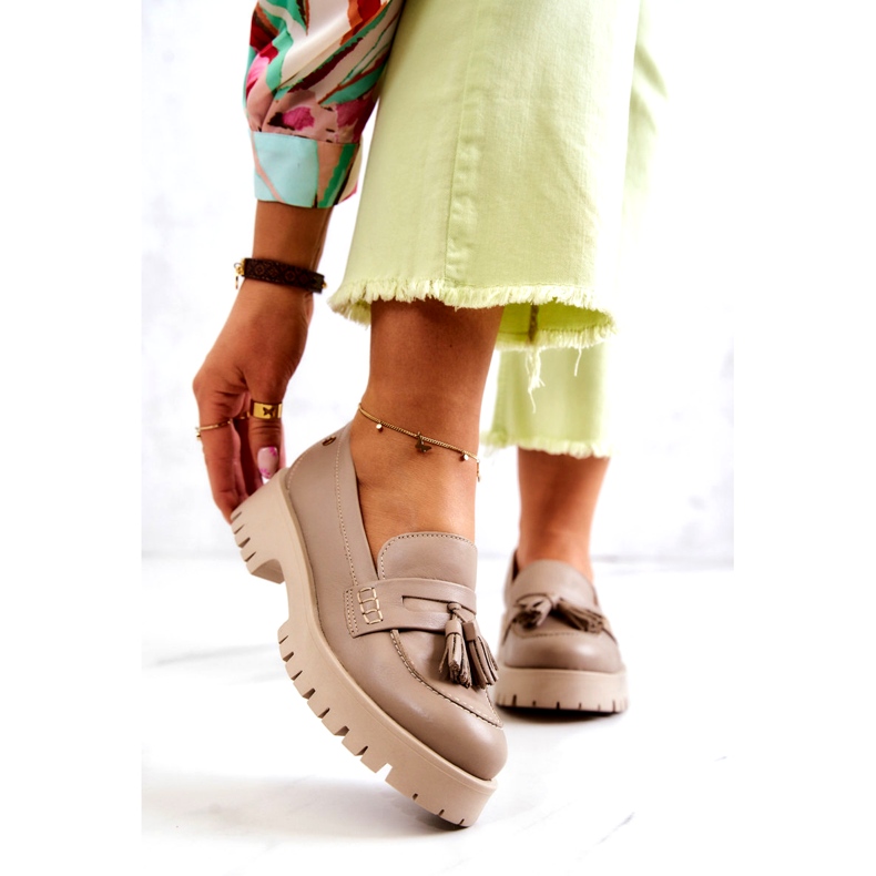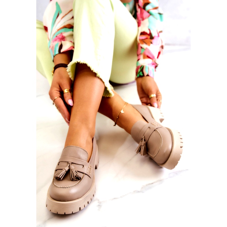 Los flecos decorativos en la parte delantera les dan un encanto único, convirtiéndolos en un elemento único de cualquier estilismo. Un tacón estable y plano de 4 cm y una suela tipo tramper garantizan la comodidad de uso diario, lo que hace que estos zapatos sean perfectos para el trabajo, la escuela y las reuniones de fin de semana con amigos.