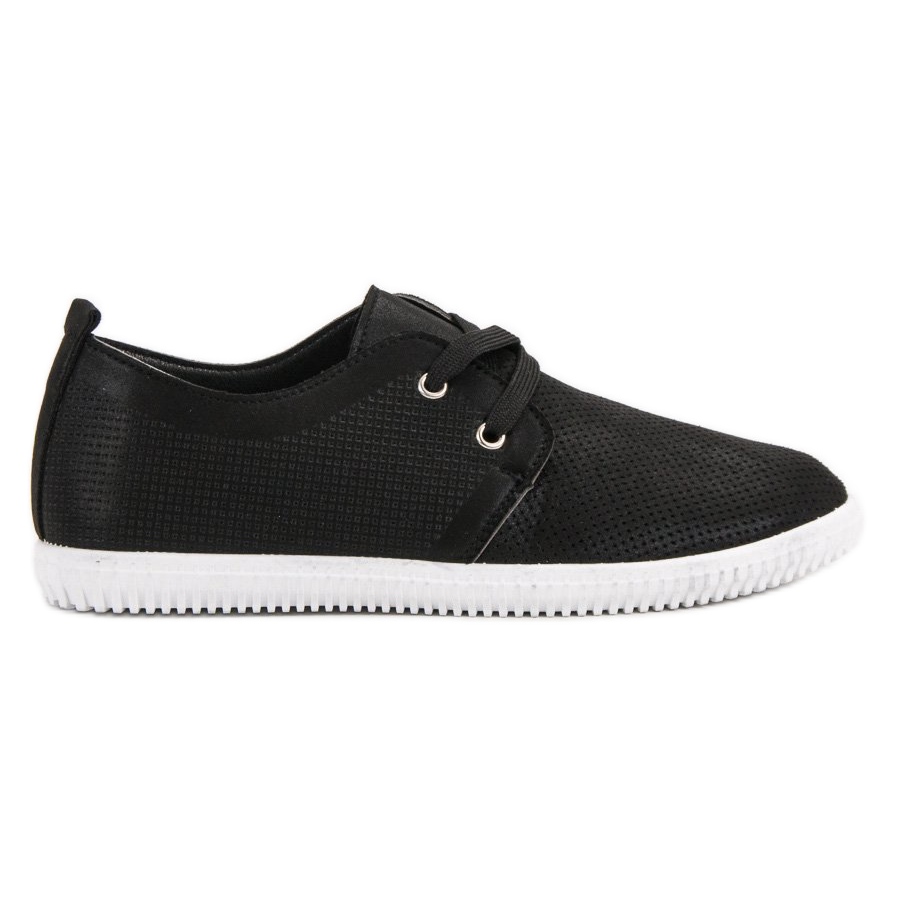 Los zapatos Super Mode Classic Black son una propuesta ideal para las mujeres que valoran la elegancia y la comodidad. Estos zapatos atemporales, fabricados con piel ecológica duradera, combinan un diseño clásico con soluciones modernas. Los zapatos negros con suela blanca son imprescindibles en todo armario, perfectos para varios estilos.