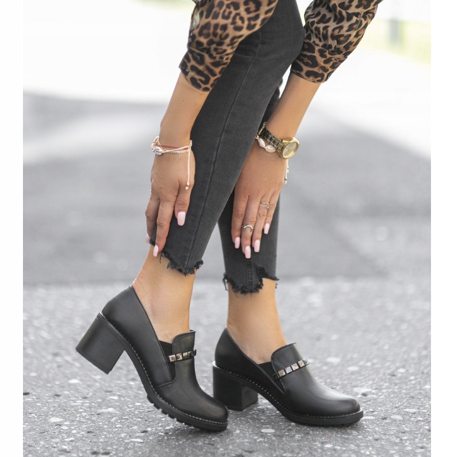 Los zapatos de tacón negros C17-6113 son slip-on, lo que facilita ponerse y quitarse los zapatos. Su suela sintética garantiza durabilidad y buen agarre, y la plantilla ecológica hace que el pie se sienta cómodo durante todo el día.