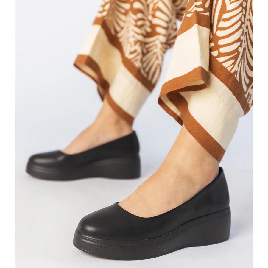 Los zapatos negros en la plataforma ecológica son imprescindibles en el guardarropa de cada mujer, combinando estilo con comodidad. El modelo 5043 se distingue por el diseño moderno y el eco de alta calidad, lo que le proporciona una apariencia elegante y una durabilidad durante mucho tiempo.