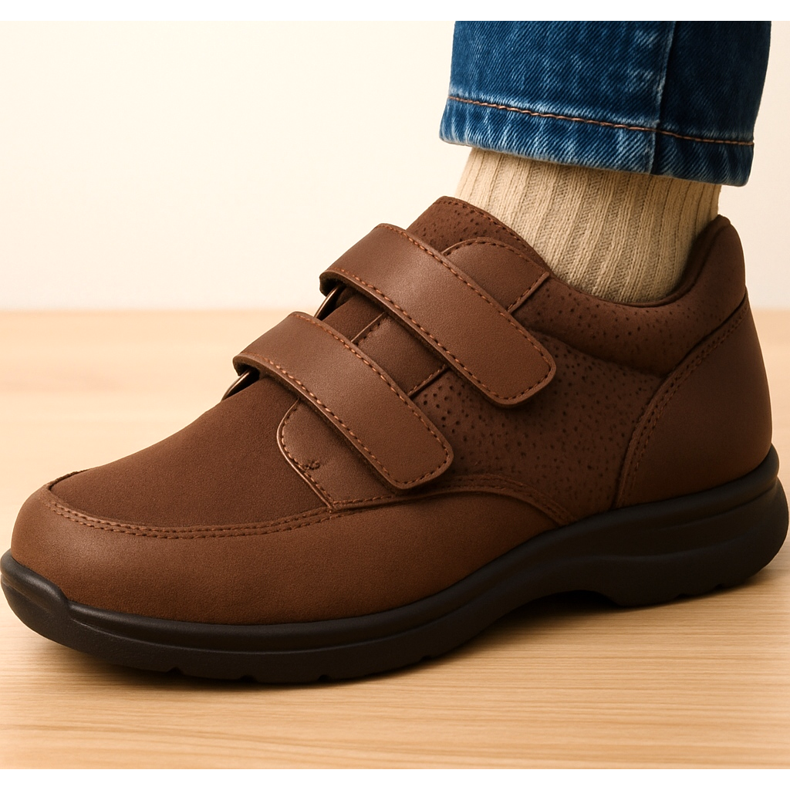 - Evitar: slip-ons estrechos, rígidos y no ajustables