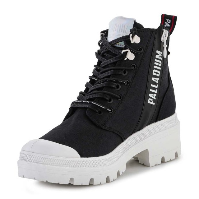 Los zapatos Palladium Pallabase Metro 97346-016-M en color negro son la elección perfecta para las mujeres que quieren resaltar su estilo urbano con comodidad y clase. Con un tacón más alto y una parte superior confeccionada en suave sarga de algodón, estos zapatos combinan perfectamente con abrigos urbanos y conjuntos informales.