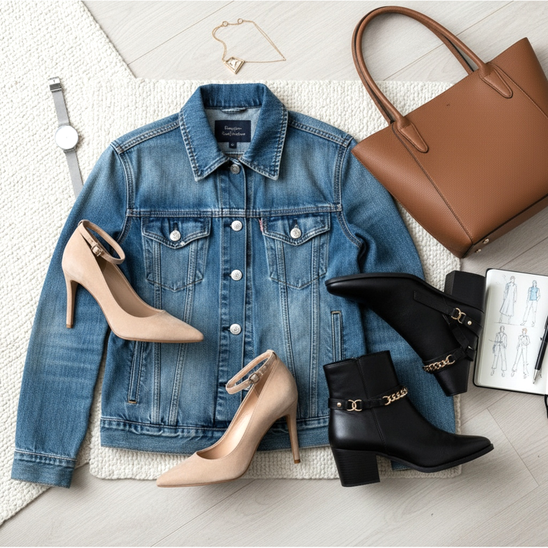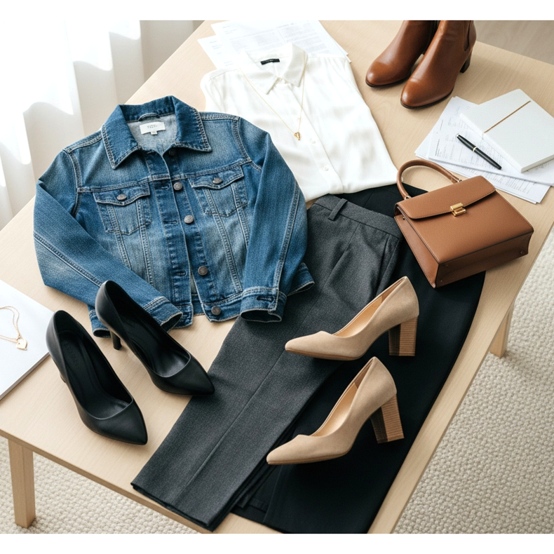 Zapatos elegantes con chaqueta vaquera para la oficina.