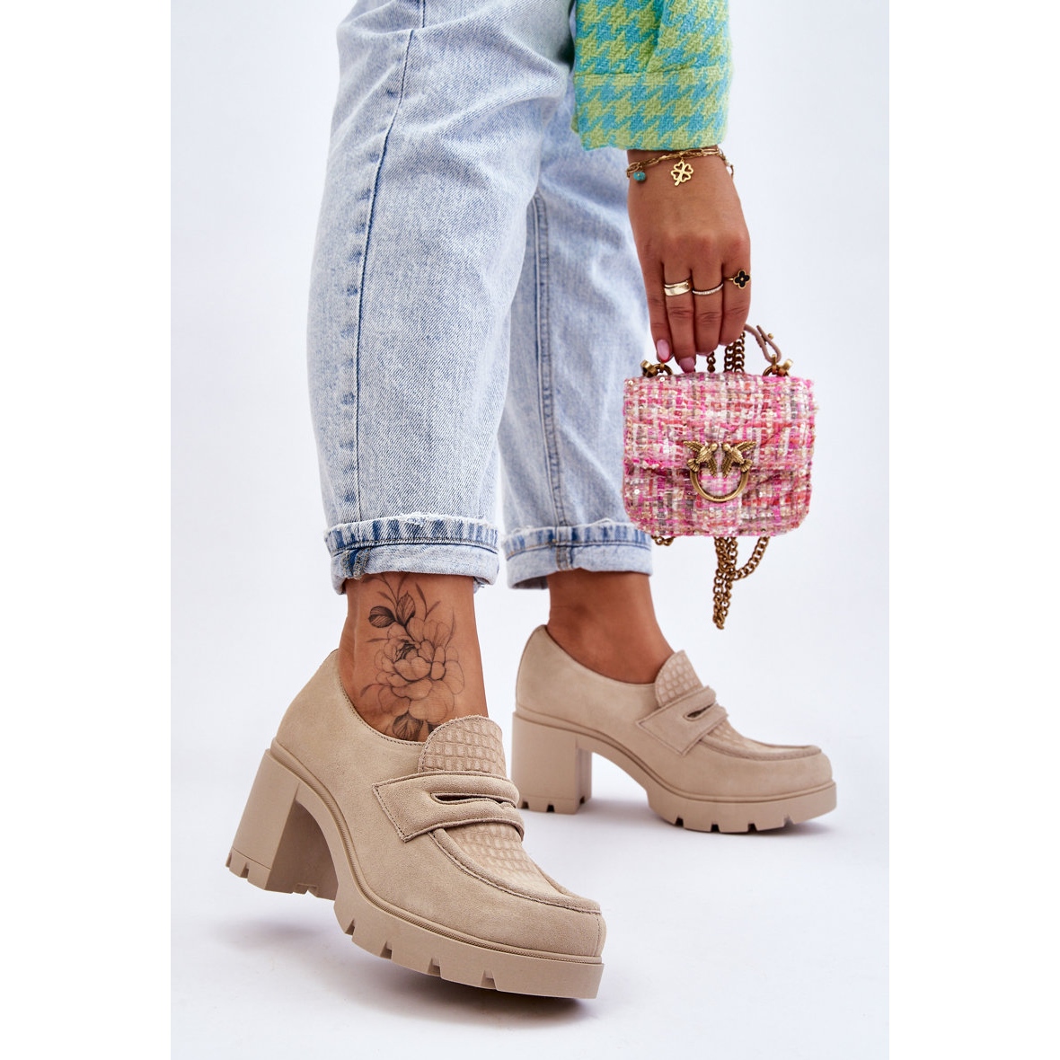 Detalles: Lemar Zapatos Plataforma Y Tacón Grueso De Ante Arabell Beige Claro