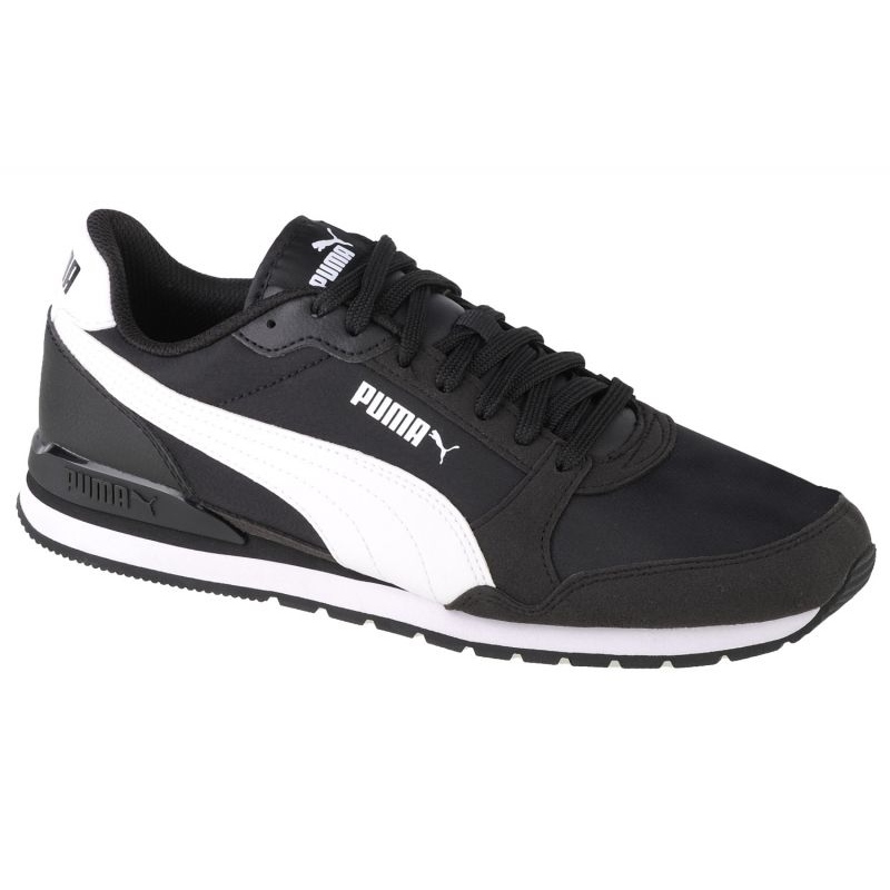 Puma St Runner V3 NL 384857-01 Zapatos Sports Sports-Classic, cómodos y universales para hombres. La parte superior negra con acentos blancos combina un personaje deportivo con estilo urbano, verificando tanto durante el entrenamiento como todos los días.