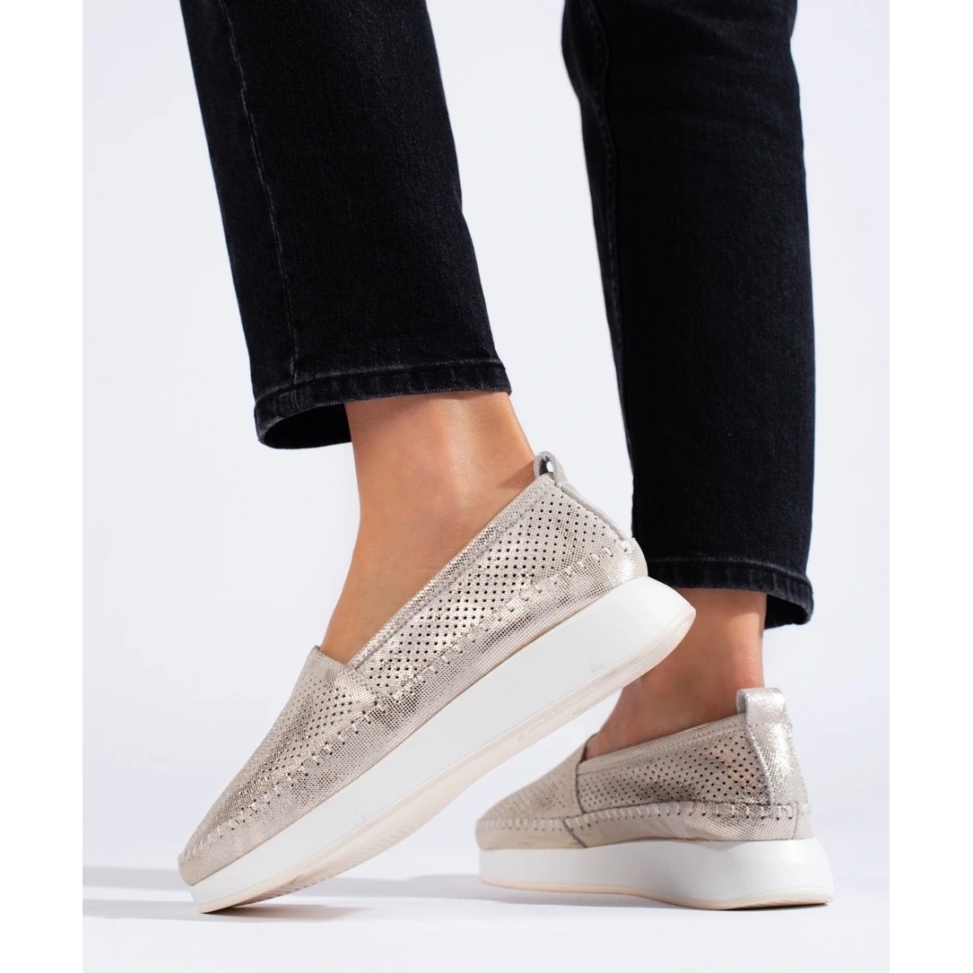 Los zapatos Shelovet de piel calada dorados son una elección perfecta para las mujeres que quieren combinar comodidad con elegancia. Hechos de cuero 100 % natural de alta calidad, estos zapatos únicos no solo brindan una apariencia elegante, sino también durabilidad, lo que los convierte en el complemento perfecto para muchos estilos.