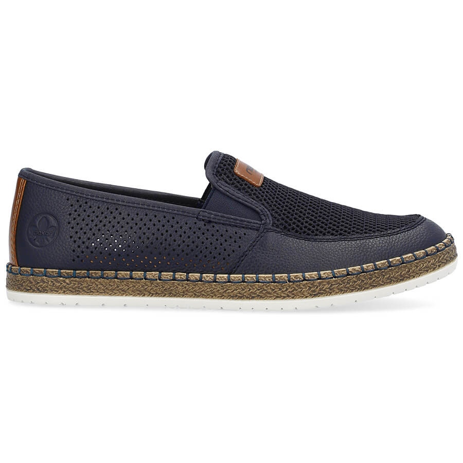 Detalles: Zapatos slip-on de hombre cómodos de piel calada azul marino Rieker B5271-14
