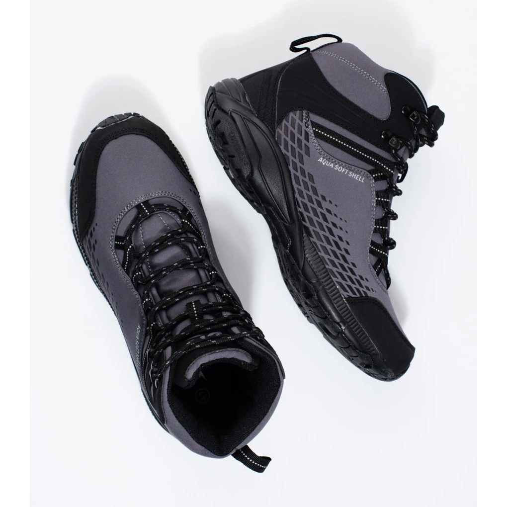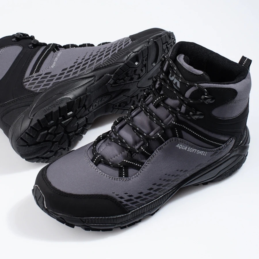 Zapatos modernos y funcionales de trekking DK en un color gris neutro: perfecto para viajes de fin de semana, paseos más largos y actividades al aire libre. La combinación de cuero ecológico con materiales textiles y la capa de concha blanda proporciona protección contra el viento, la buena transpirabilidad y el aumento de la resistencia a la humedad.