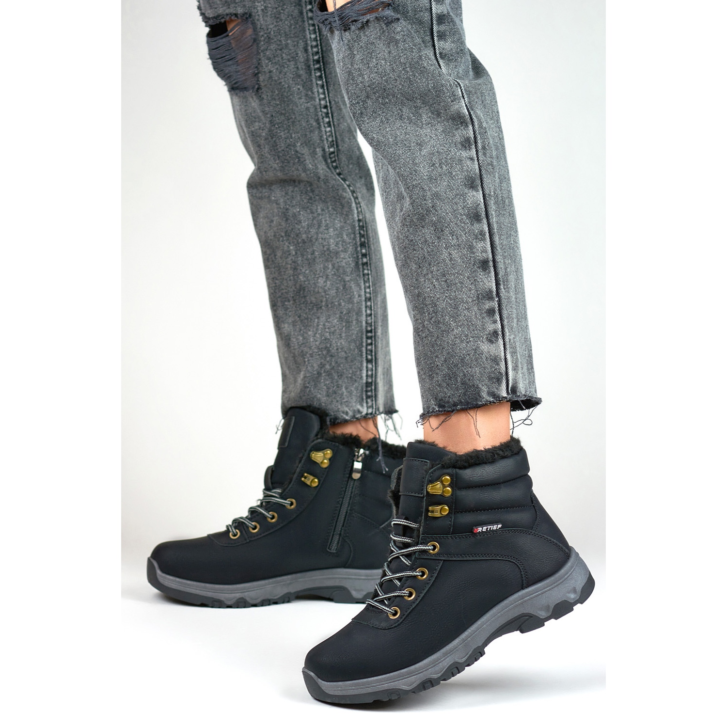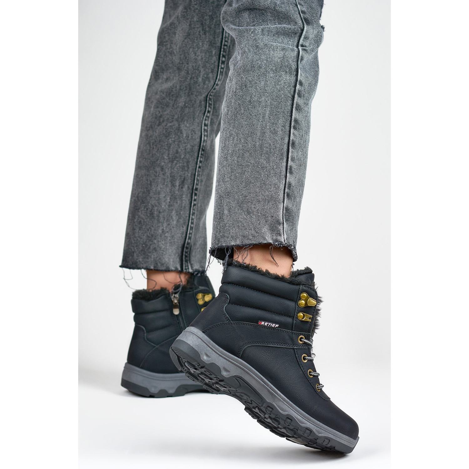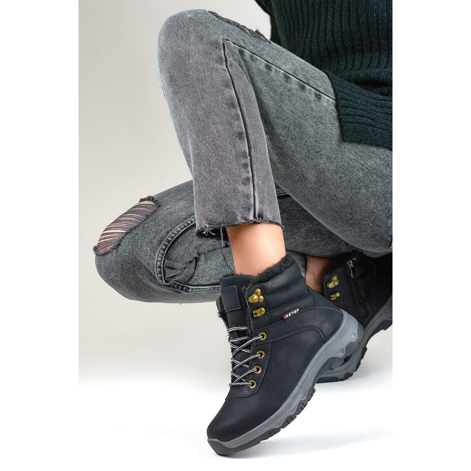 Zapatos de trekking dedicados a mujeres activas para la temporada de otoño e invierno. Su parte superior sólida está hecha de cuero ecológico duradero, lo que garantiza no solo durabilidad, sino también resistencia a las condiciones climáticas cambiantes. Con una altura de caña de 10 cm, estos zapatos brindan el soporte y la estabilidad necesarios al practicar trekking o senderismo en una variedad de terrenos. El interior de los zapatos está forrado con una agradable piel ecológica, que no sólo proporciona comodidad, sino que también calienta eficazmente en los días más fríos. El aislamiento de piel los convierte en una excelente opción para las aventuras invernales al aire libre, protegiendo tus pies del frío y la humedad. Los cordones de los zapatos permiten un ajuste preciso a la forma del pie, lo que influye en la comodidad y la sujeción segura del pie en el zapato. La punta redonda garantiza la posición natural de los dedos, lo cual es importante durante el uso prolongado, especialmente durante actividades exigentes al aire libre. El acabado negro le da a los zapatos un aspecto universal y moderno, haciéndolos encajar perfectamente tanto con estilos urbanos como sirviendo como calzado de trekking sólido. Estos zapatos combinan funcionalidad, comodidad y estilo, satisfaciendo las expectativas de las mujeres activas de todos los días.