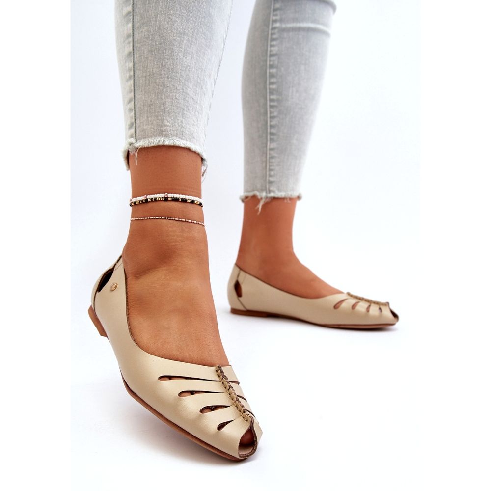 Detalles: Zazoo 10009 cómodo ballerinas de cuero de cuero beige