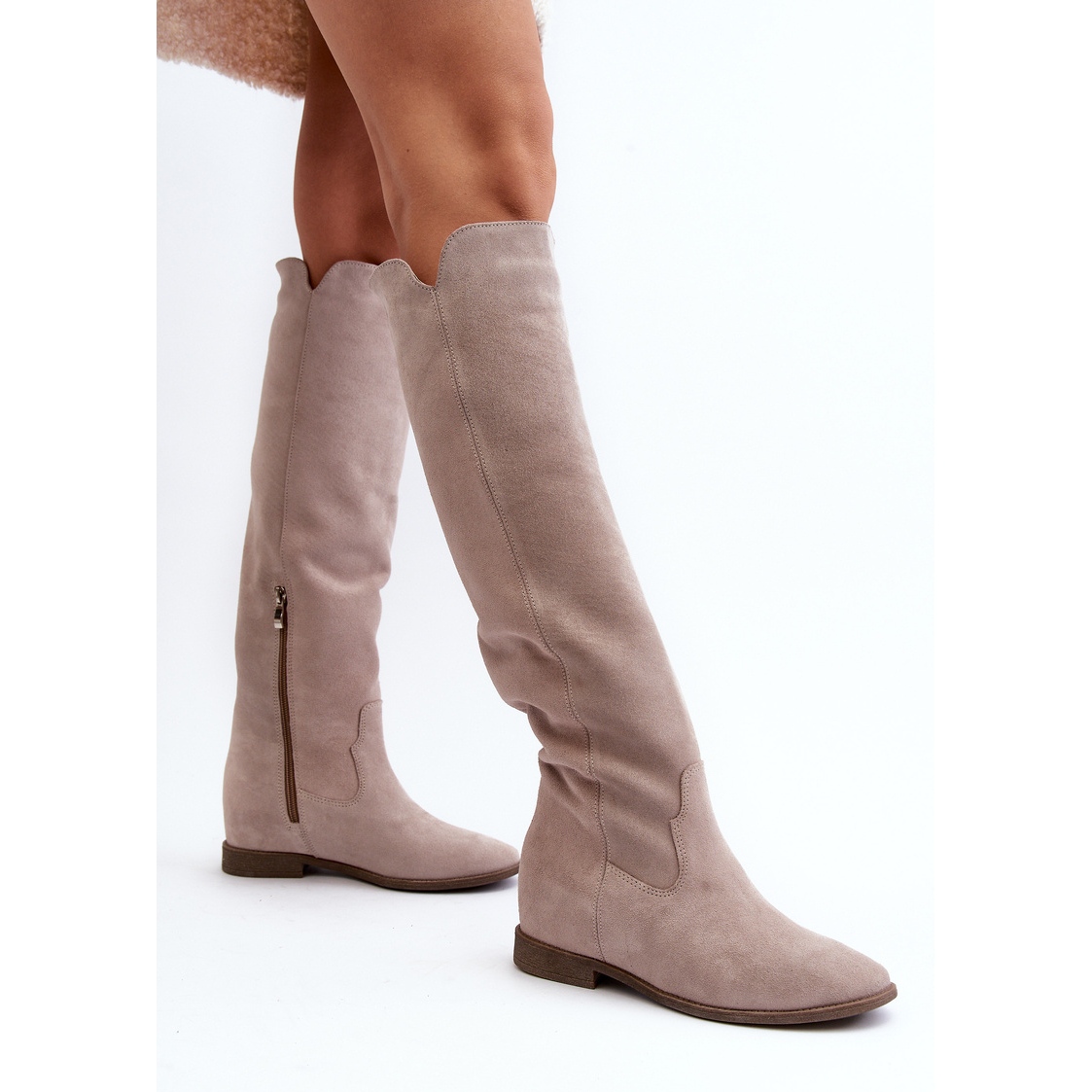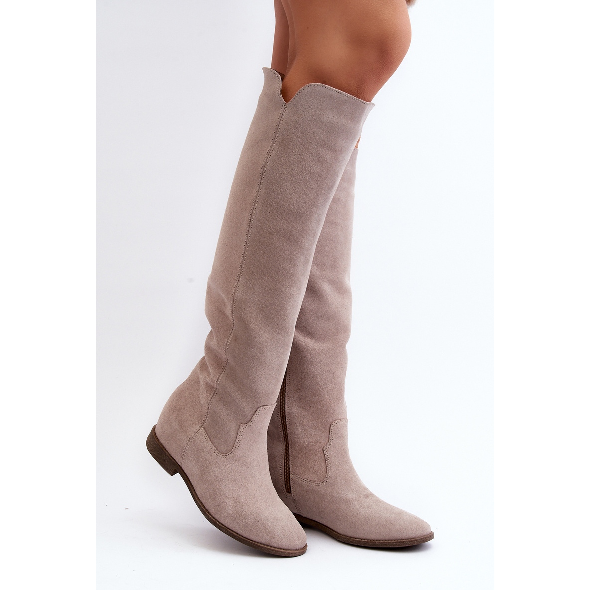 Zazoo Zazoo 3407 Botas hasta la rodilla de ante con tacón plano capuchino beige