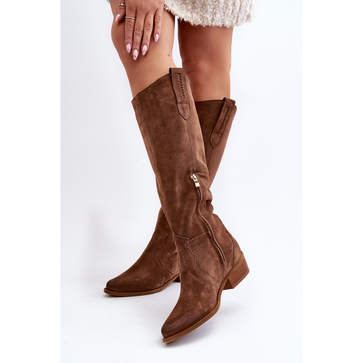 Las botas vaqueras de ante marrón para mujer Zazoo 3427 están disponibles en una amplia gama de tallas, para que cada mujer pueda encontrar una que le quede perfectamente. El color marrón de los zapatos, adecuadamente seleccionado por el fabricante, enfatiza su carácter universal y multifuncional, lo que permite combinarlos con varios estilos, desde informales hasta más formales.