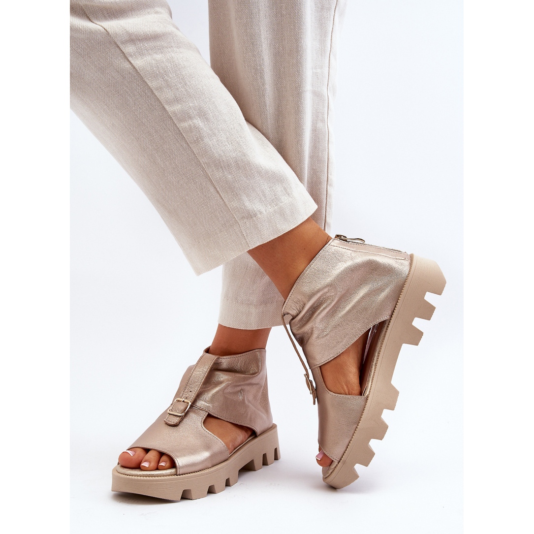 No esperes más, disfruta de la comodidad y el estilo con una de las Sandalias de Cuero con Cremallera para Mujer Zazoo 999, Doradas.