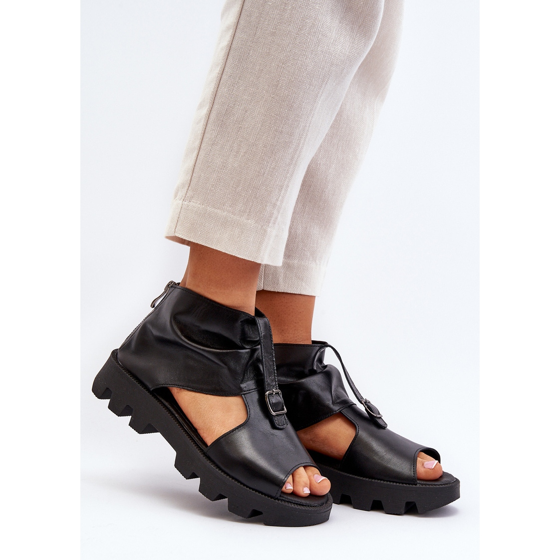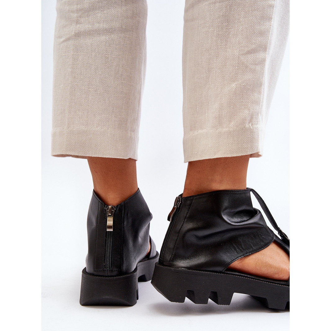 Con un tacón plano de 4 centímetros, las sandalias garantizan estabilidad y libertad de movimiento, algo fundamental durante los paseos de verano. Una elegante correa con hebilla aporta cierta elegancia a los zapatos, combinando perfectamente con la piel negra. Una cremallera en la parte posterior de los zapatos facilita ponerse y quitarse, eliminando el problema de las correas y cierres sueltos.