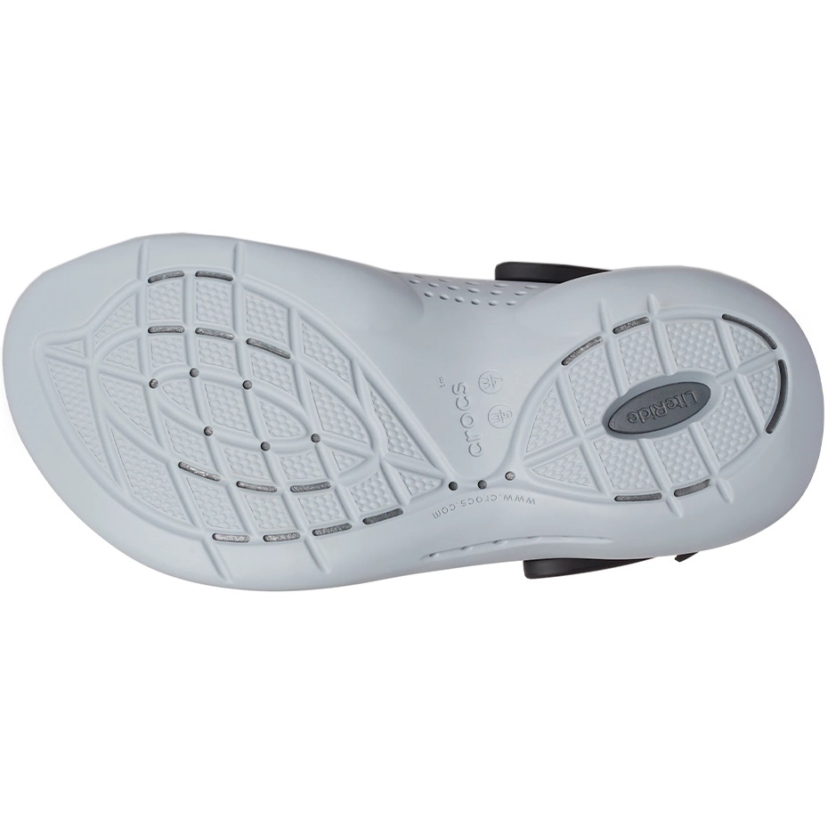 Los zuecos Crocs serán el compañero perfecto mientras te relajas junto al agua o en casa. La parte superior de punto elástico favorece la ventilación de la piel y facilita el ajuste. Plantilla de resina suave LiteRide. La suela exterior garantiza la tracción. Barra giratoria. Modelo negro con detalles en gris.